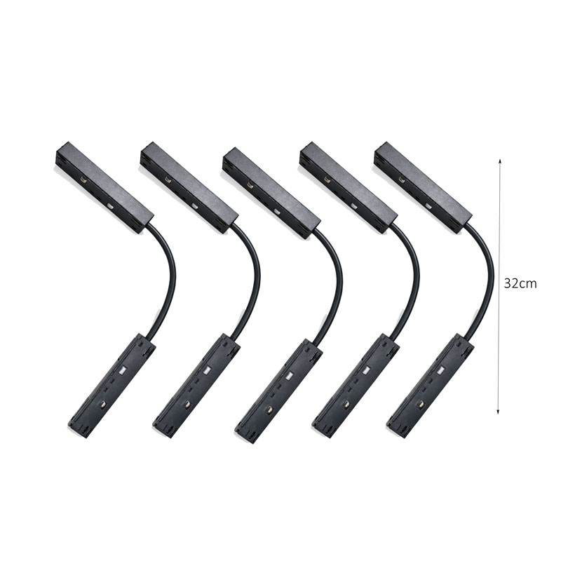 Το σετ περιλαμβάνει 5 αντάπτορες φωτιστικού ράγας, ιδανικούς για τη σύνδεση και προσαρμογή φωτιστικών σωμάτων σε συστήματα ράγας. Κάθε αντάπτορας διαθέτει ενσωματωμένο καλώδιο μήκους 32 cm, προσφέροντας ευελιξία στην τοποθέτηση και σωστή απόσταση μεταξύ ράγας και φωτιστικού.