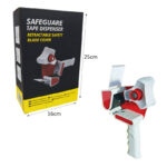 Εξοπλισμένο με αναδιπλούμενο προστατευτικό κάλυμμα λεπίδας για μεγαλύτερη ασφάλεια κατά τη χρήση και την αποθήκευση. Ο ανθεκτικός μηχανισμός κοπής εξασφαλίζει καθαρή και ακριβή κοπή της ταινίας κάθε φορά.