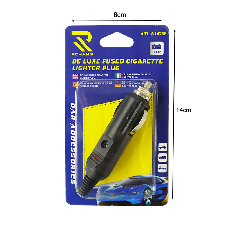 Ανθεκτικό βύσμα αναπτήρα αυτοκινήτου με ενσωματωμένη ασφάλεια, ιδανικό για χρήση σε οχήματα 12V και 24V. Κατάλληλο για τροφοδοσία και φόρτιση ηλεκτρονικών συσκευών ή άλλων εξαρτημάτων που συνδέονται μέσω αναπτήρα.