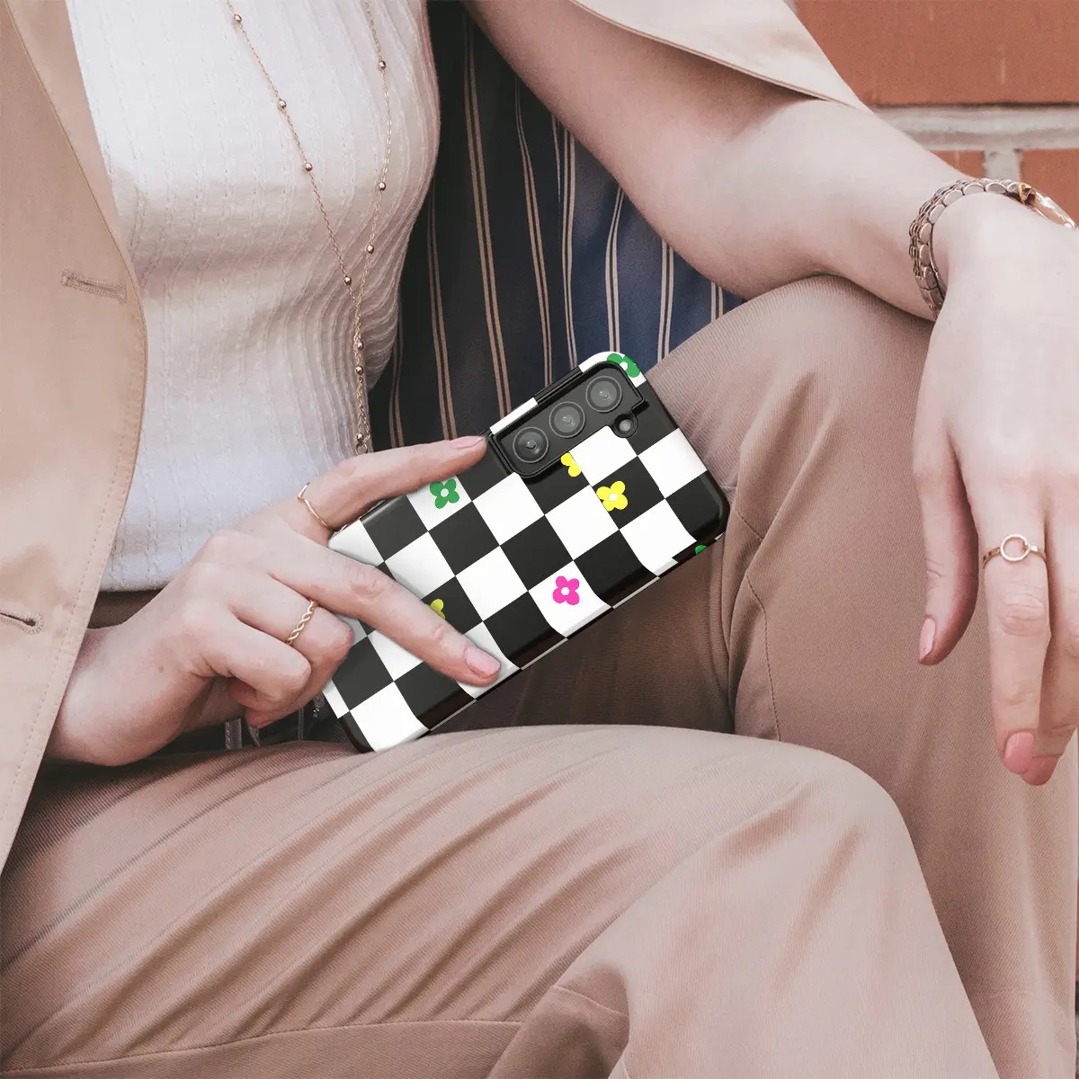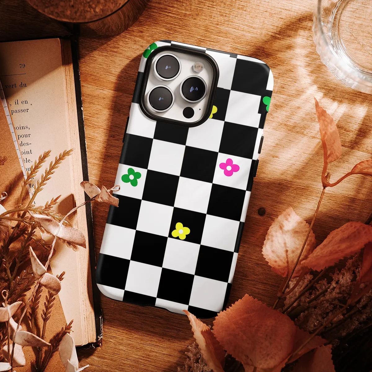 Θήκη iPhone για Όλα τα μοντέλα 3D Design Με Σχέδιο Checkerboard Flower (Κωδ:1168)