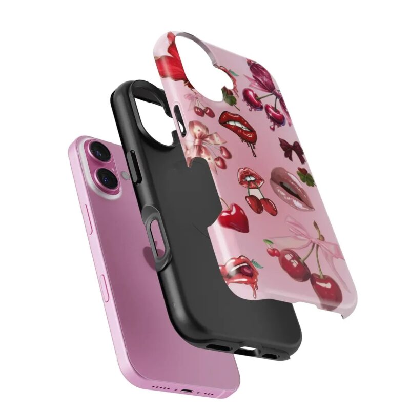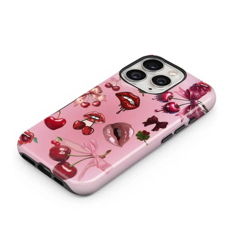 Θήκη iPhone για Όλα τα μοντέλα 3D Design Με Σχέδιο Lips and Cherries (Κωδ:1068)