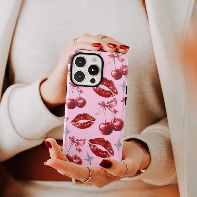 Θήκη iPhone για Όλα τα μοντέλα 3D Design Με Σχέδιο Lips and Red Cherries (Κωδ:1072)
