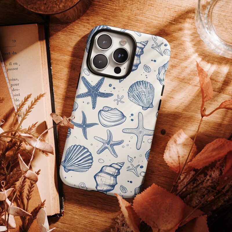 Θήκη iPhone για Όλα τα μοντέλα 3D Design Με Σχέδιο Seashells and Starfish White (Κωδ:1075)