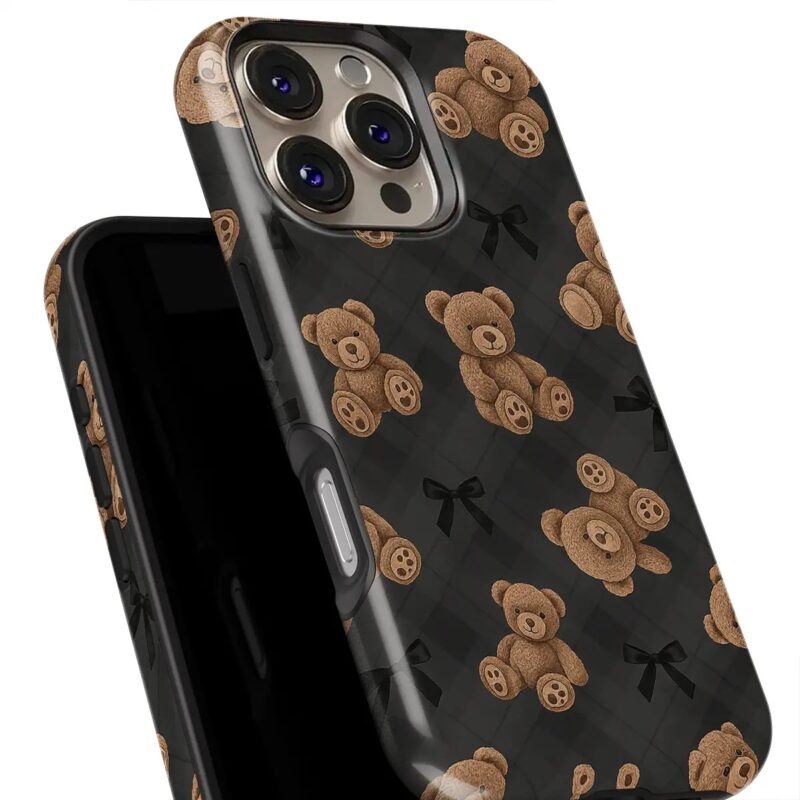 Θήκη iPhone για Όλα τα μοντέλα 3D Design Με Σχέδιο Teddy Bear & Ribbon Black (Κωδ:1175)