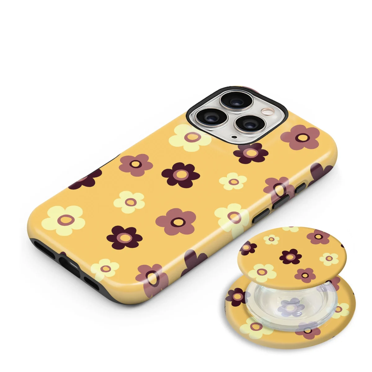 Θήκη iPhone για Όλα τα μοντέλα 3D Design Με PopSocket και Σχέδιο Cute Yellow Flowers (Κωδ:1090)