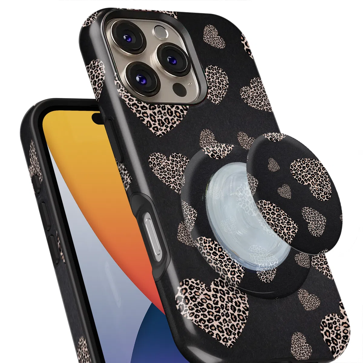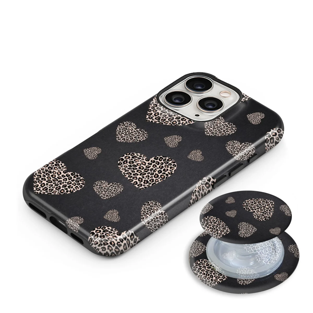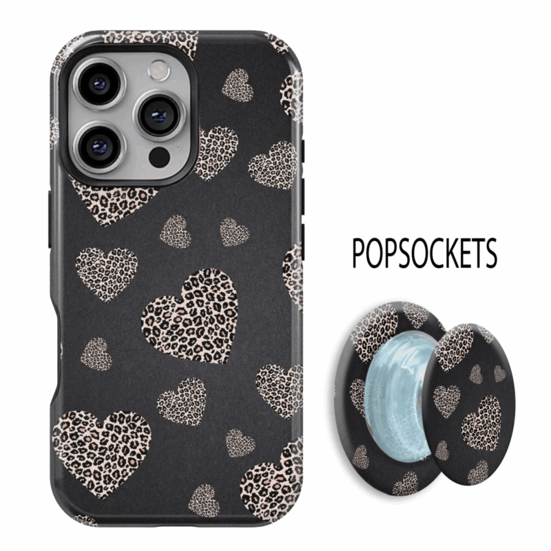 Θήκη iPhone για Όλα τα μοντέλα 3D Design Με PopSocket και Σχέδιο Leopard Hearts (Κωδ:1096)