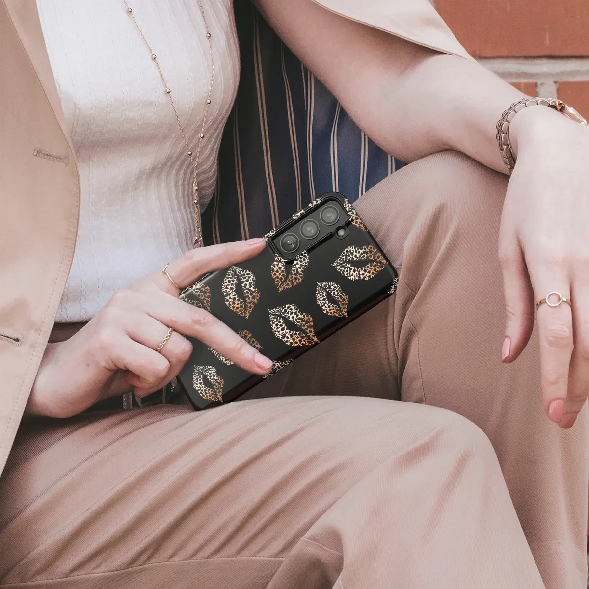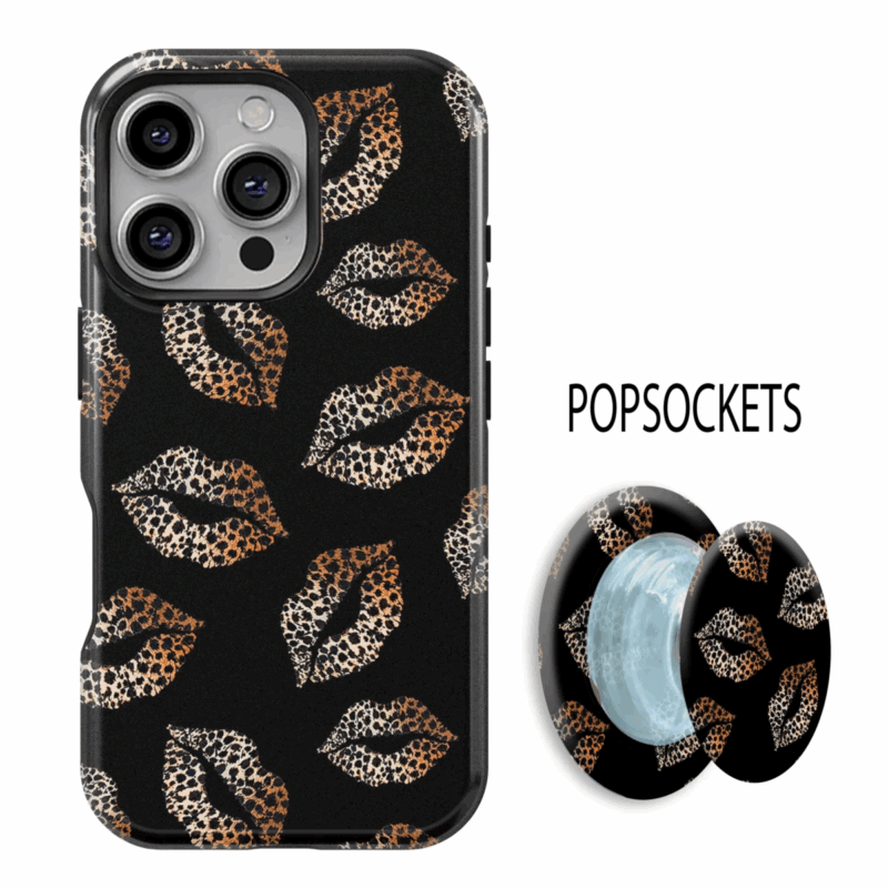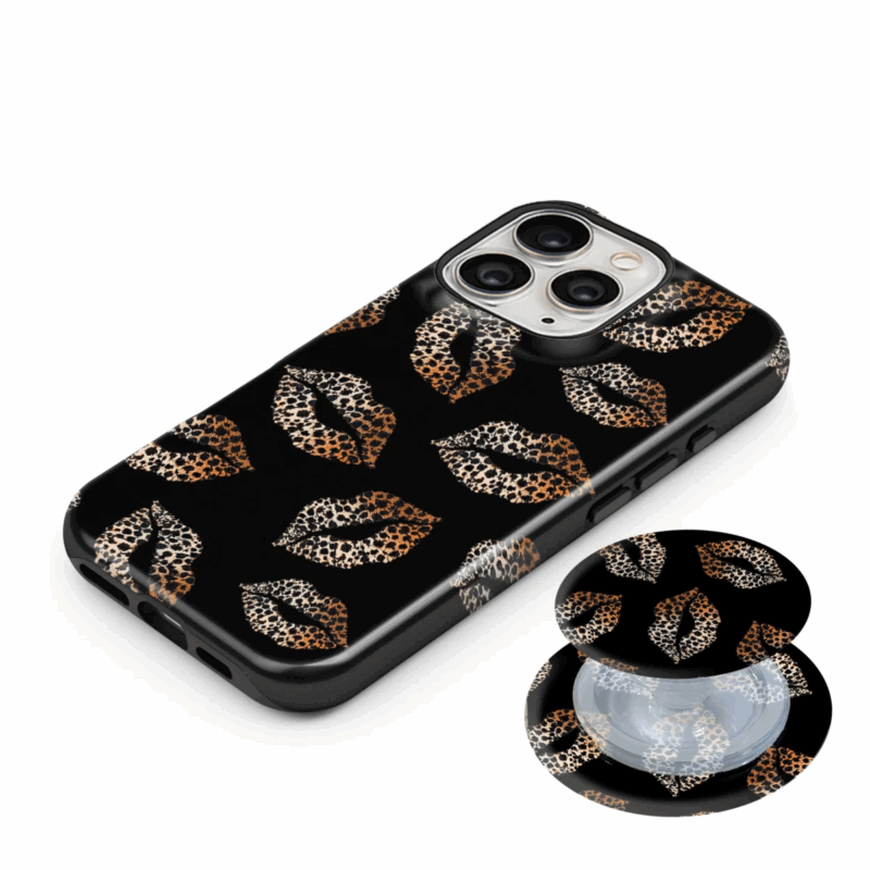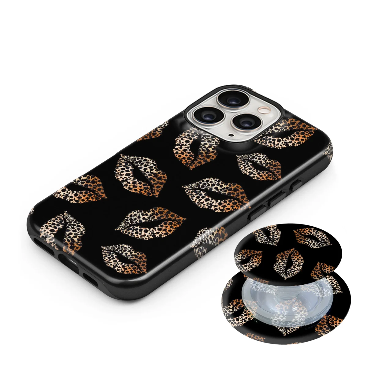 Θήκη iPhone για Όλα τα μοντέλα 3D Design Με PopSocket και Σχέδιο Black Leopard Lips (Κωδ:1108)