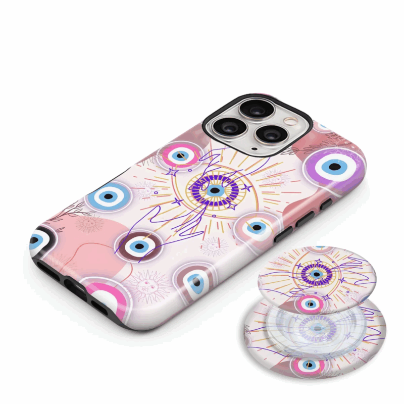 Θήκη iPhone για Όλα τα μοντέλα 3D Design Με PopSocket και Σχέδιο Pink Eye (Κωδ:1111)