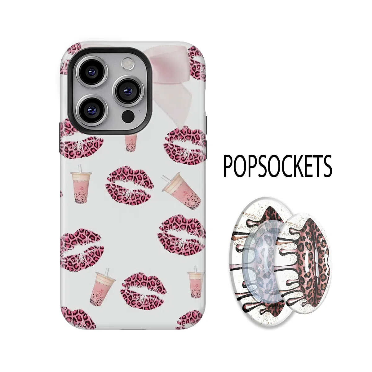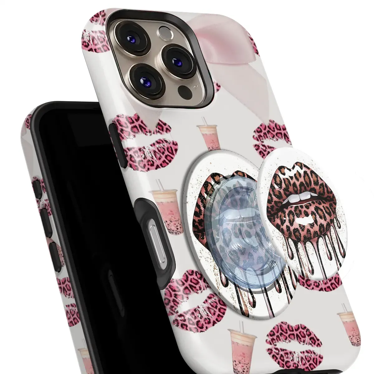 Θήκη iPhone για Όλα τα μοντέλα 3D Design Με PopSocket και Σχέδιο Lips and Smoothies (Κωδ:1084)