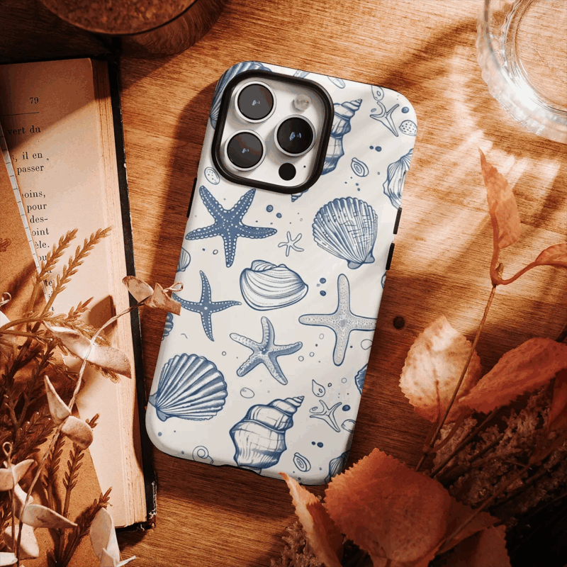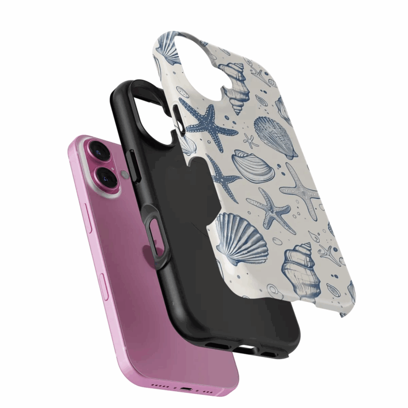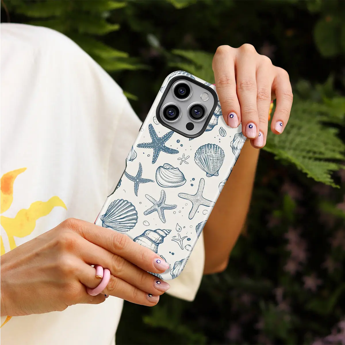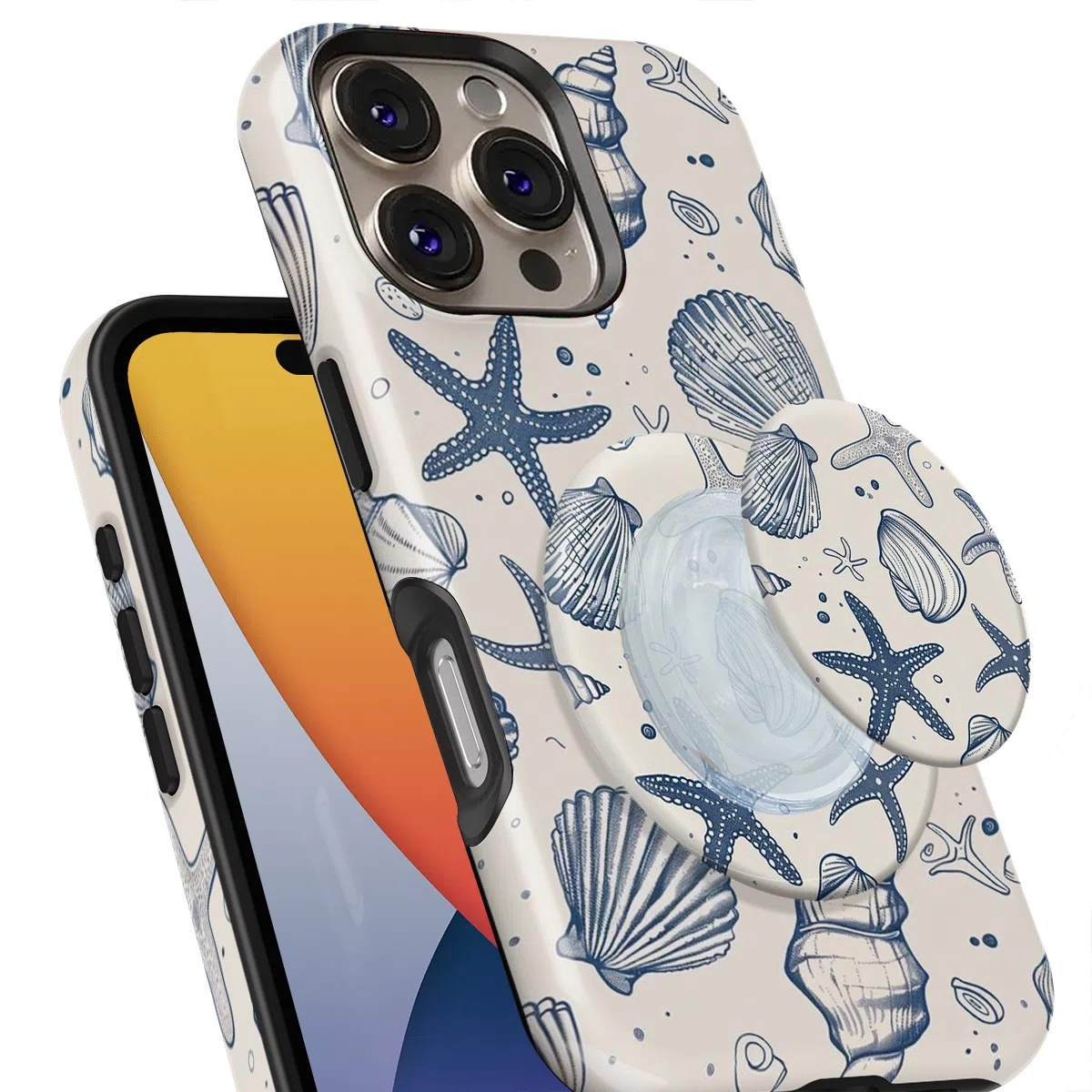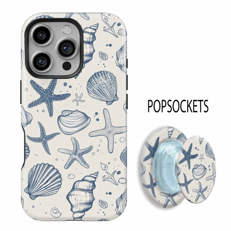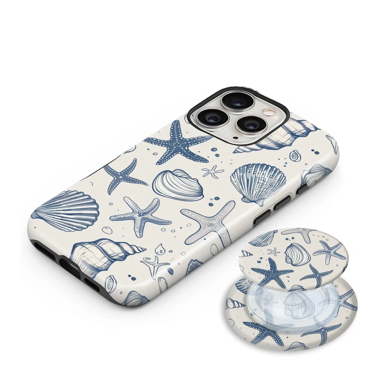 Θήκη iPhone για Όλα τα μοντέλα 3D Design Με PopSocket και Σχέδιο Seashells & Starfish (Κωδ:1086)