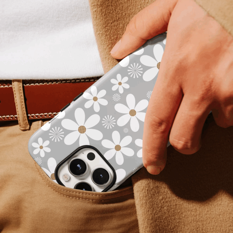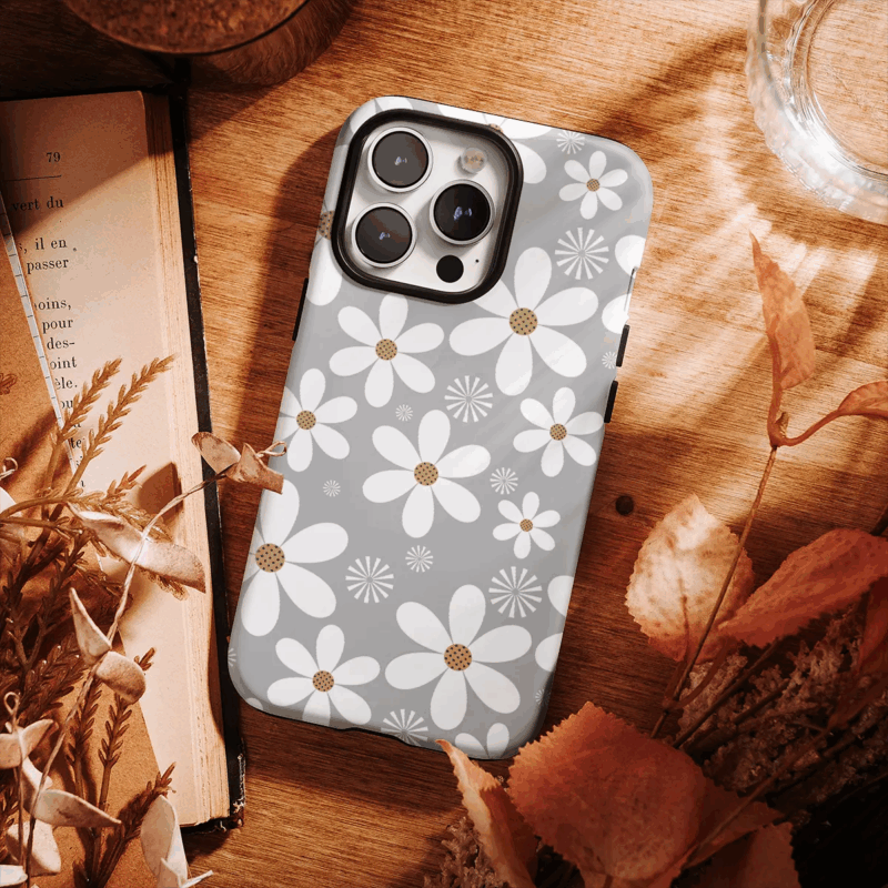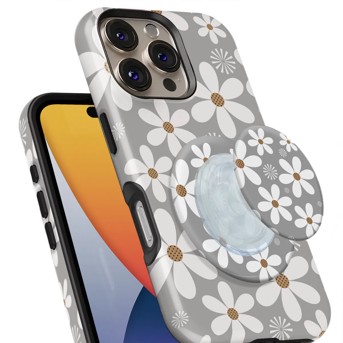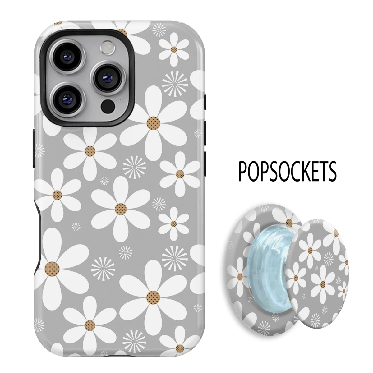 Θήκη iPhone για Όλα τα μοντέλα 3D Design Με PopSocket και Σχέδιο Gray Daisies (Κωδ:1089)