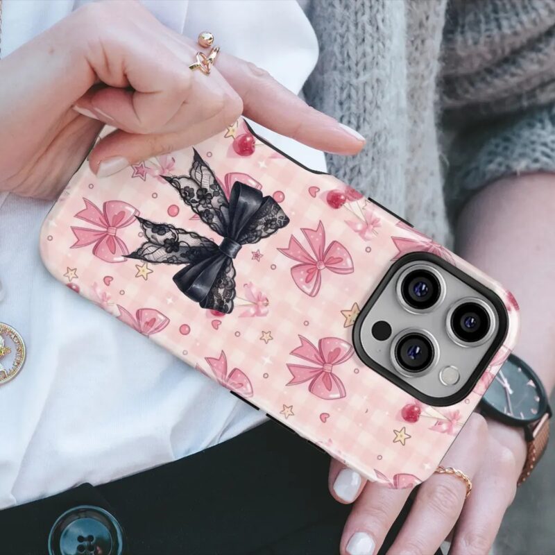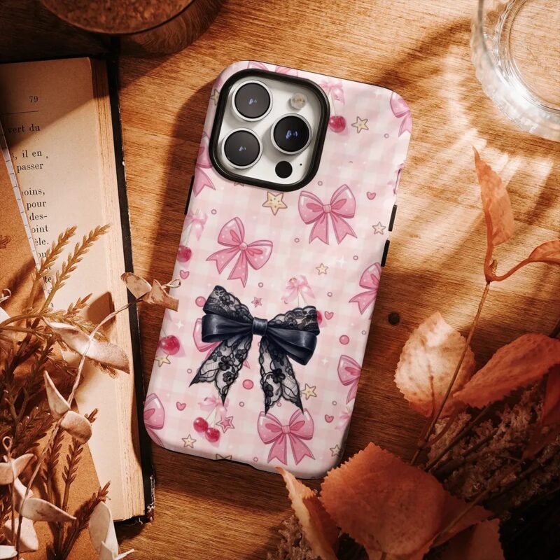 Θήκη Samsung για Όλα τα μοντέλα 3D Design Με Σχέδιο Pink Cherry Bow Lace (Κωδ:1069)
