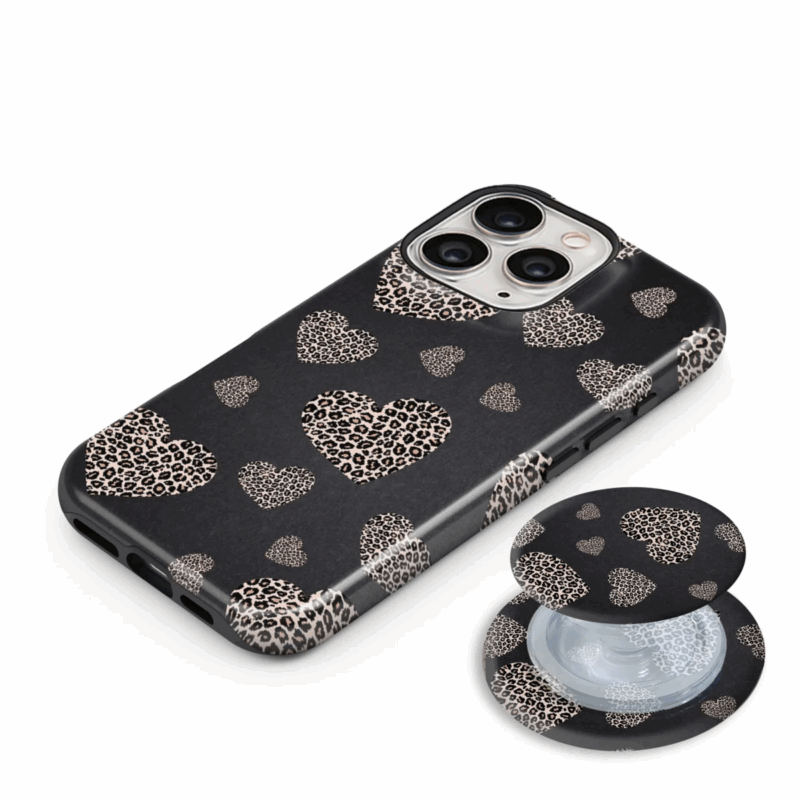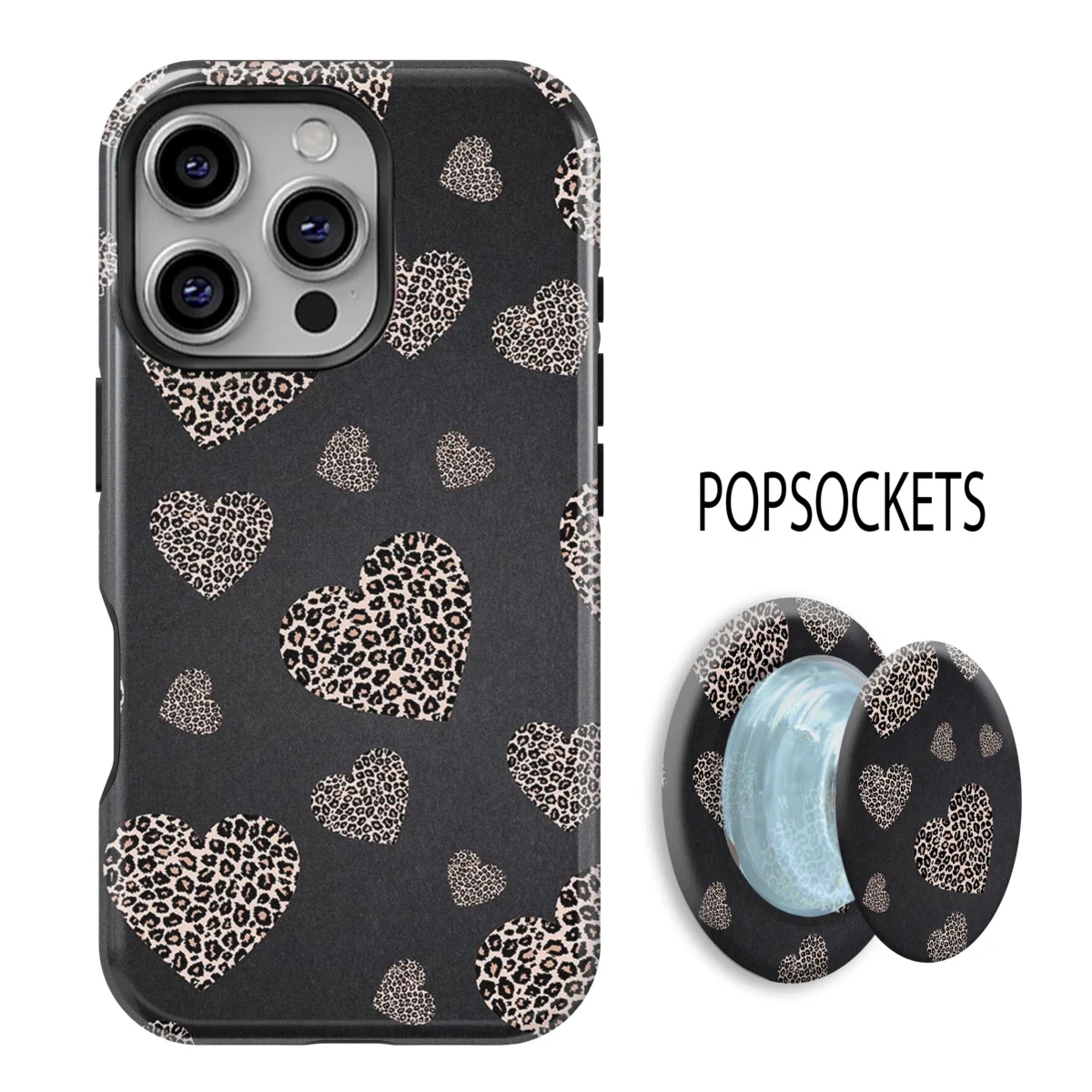 Θήκη Samsung για Όλα τα μοντέλα 3D Design Με PopSocket και Σχέδιο Leopard Hearts (Κωδ:1096)