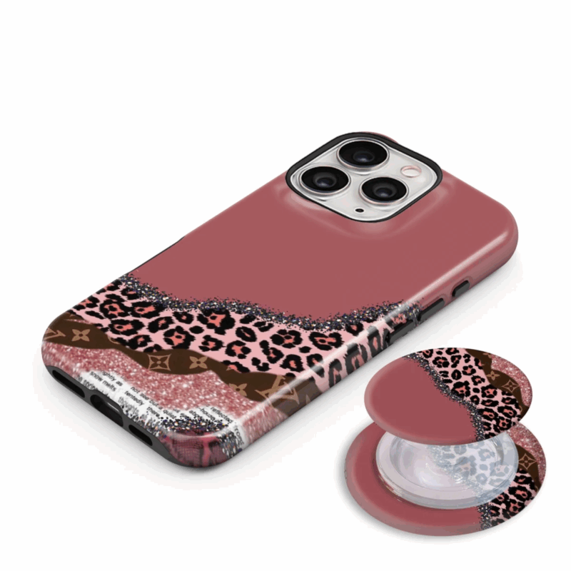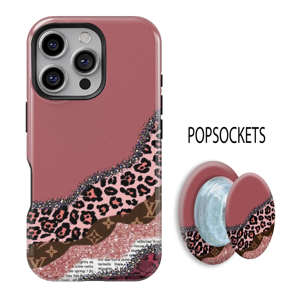 Θήκη Samsung για Όλα τα μοντέλα 3D Design Με PopSocket και Σχέδιο Pink Glitter Leopard (Κωδ:1102)