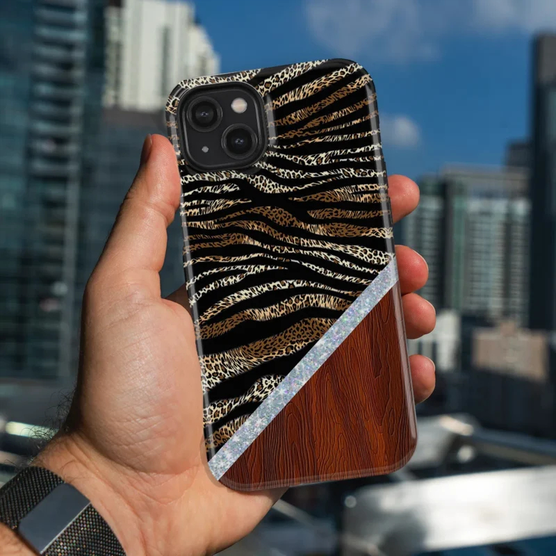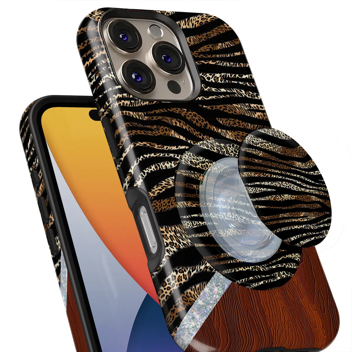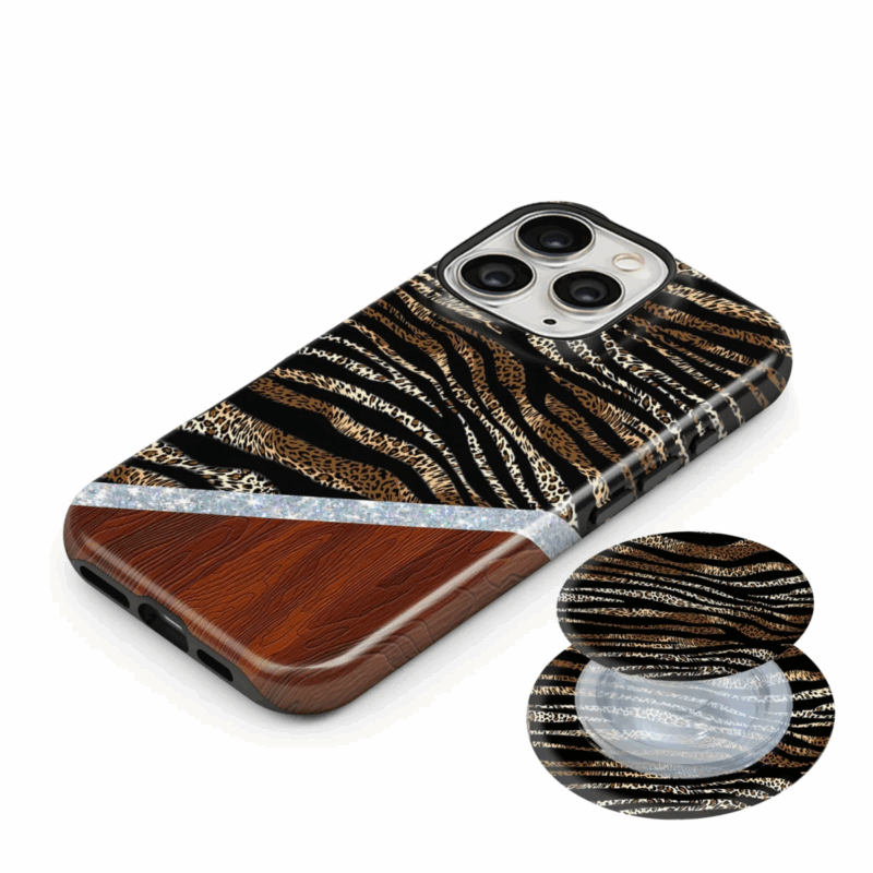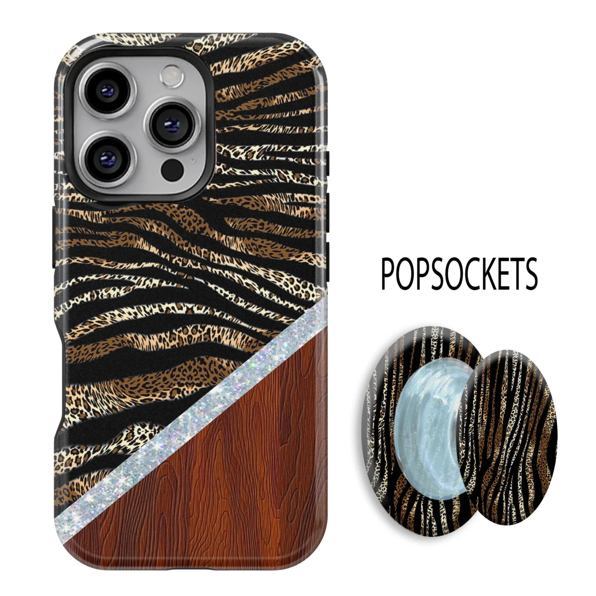 Θήκη Samsung για Όλα τα μοντέλα 3D Design Με PopSocket και Σχέδιο Wood And Leopards (Κωδ:1107)