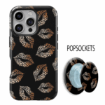 Θήκη Samsung για Όλα τα μοντέλα 3D Design Με PopSocket και Σχέδιο Black Leopard Lips (Κωδ:1108)