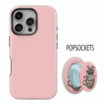 Θήκη Samsung για Όλα τα μοντέλα 3D Design Με PopSocket και Σχέδιο Pink Owl (Κωδ:1109)