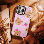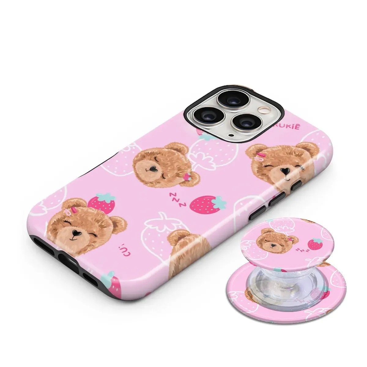 Θήκη Samsung για Όλα τα μοντέλα 3D Design Με PopSocket και Σχέδιο Teddy Bear and Strawberries (Κωδ:1083)