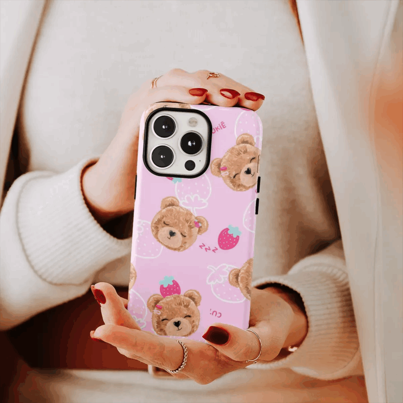 Θήκη Xiaomi για Όλα τα μοντέλα 3D Design Με PopSocket και Σχέδιο Teddy Bear and Strawberries (Κωδ:1083)