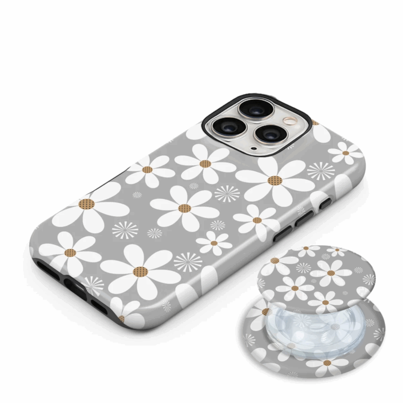Θήκη Samsung για Όλα τα μοντέλα 3D Design Με PopSocket και Σχέδιο Gray Daisies (Κωδ:1089)