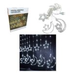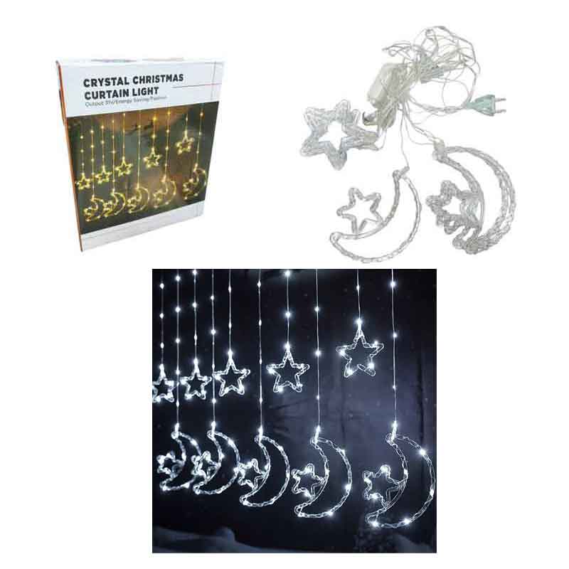 Κουρτίνα Φωτάκια Χριστουγέννων με Αστέρια και Φεγγάρια Ψυχρό Χρώμα 10L 3M– Crystal Christmas Curtain Light with Stars & Moons White light