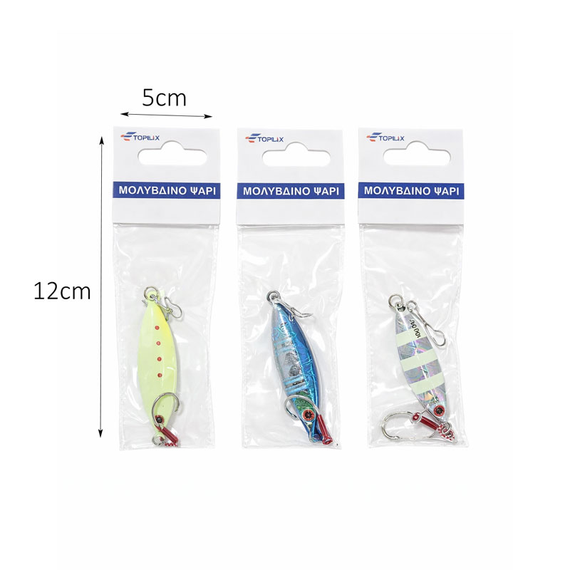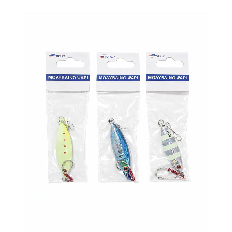 Μολυβένιο ψάρι τεχνητό δόλωμα, σχεδιασμένο για αποτελεσματικό ψάρεμα σε θάλασσα και γλυκά νερά. Η ρεαλιστική του εμφάνιση και τα έντονα χρώματα προσελκύουν την προσοχή των ψαριών, αυξάνοντας τις πιθανότητες επιτυχίας.