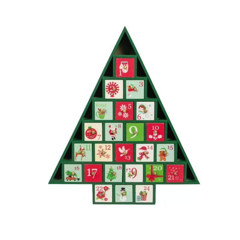 Χαρακτηριστικά προϊόντος: Πράσινο ημερολόγιο σε σχήμα δέντρου 24 πολύχρωμα και διακοσμημένα συρτάρια