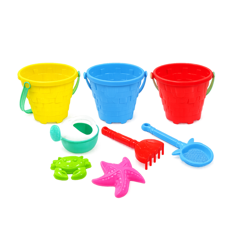 Πρακτικό και διασκεδαστικό παιδικό σετ παραλίας που περιλαμβάνει κουβαδάκι και βασικά εργαλεία για παιχνίδι στην άμμο, όπως φτυαράκι, τσουγκράνα και καλούπια. Ιδανικό για δημιουργία κάστρων και ατελείωτες ώρες παιχνιδιού στην παραλία ή στον κήπο.