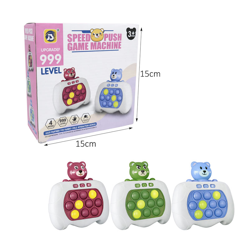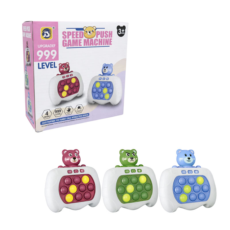Διαδραστικό παιχνίδι αντίδρασης Push Pop που χαρίζει ατελείωτη διασκέδαση και βοηθά στην ανάπτυξη συγκέντρωσης, ταχύτητας και συντονισμού. Διαθέτει φωτεινά κουμπιά και διαφορετικά επίπεδα παιχνιδιού, ενθαρρύνοντας τα παιδιά να εξασκούν τη μνήμη και τα αντανακλαστικά τους μέσα από ευχάριστες προκλήσεις. Ο εργονομικός σχεδιασμός και το χαριτωμένο σχήμα με αρκουδάκι το καθιστούν ιδανικό για καθημερινό παιχνίδι στο σπίτι ή στο ταξίδι.