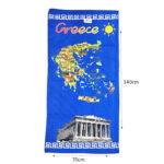 Πετσέτα θαλάσσης με εντυπωσιακό σχέδιο χάρτη της Ελλάδας και διακοσμητικά στοιχεία εμπνευσμένα από τον ελληνικό πολιτισμό. Με έντονα χρώματα και ιδιαίτερο design, αποτελεί ιδανική επιλογή για καλοκαιρινές εξορμήσεις στην παραλία ή την πισίνα.