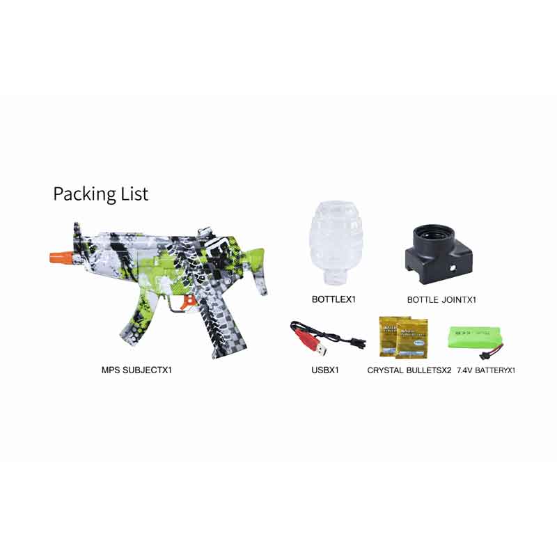Παιδικό παιχνίδι όπλο τύπου MP5, σχεδιασμένο για διασκεδαστικό και ασφαλές παιχνίδι. Το σετ περιλαμβάνει το όπλο, δοχείο για τις μπίλιες, μπαταρία και καλώδιο φόρτισης USB, προσφέροντας ολοκληρωμένη εμπειρία παιχνιδιού. Διαθέτει εντυπωσιακό σχεδιασμό και εργονομική λαβή για άνετο κράτημα. Ιδανικό για παιχνίδι ρόλων και ψυχαγωγία στο σπίτι ή σε εξωτερικό χώρο, πάντα με επίβλεψη ενηλίκων.