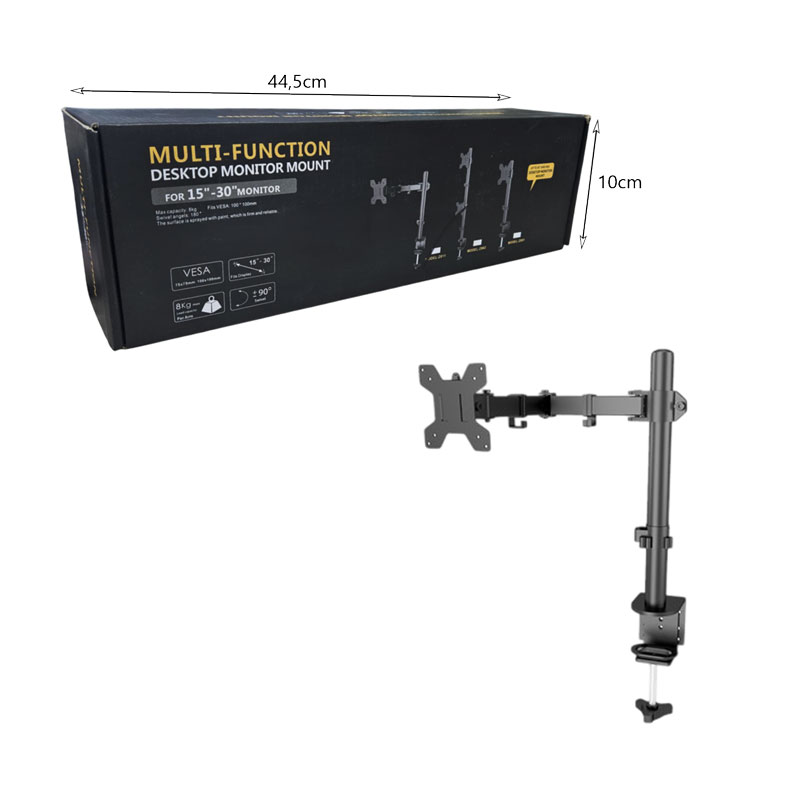Οργανώστε το γραφείο σας και βελτιώστε τη στάση σας με την πολυλειτουργική βάση οθόνης γραφείου. Κατάλληλη για οθόνες 15″ έως 30″ με υποστήριξη VESA, αυτή η στιβαρή μεταλλική βάση διαθέτει ρυθμιζόμενο βραχίονα για εργονομική προσαρμογή σε ύψος και γωνία θέασης. Ιδανική για επαγγελματικά γραφεία, gaming setups ή οικιακή εργασία.