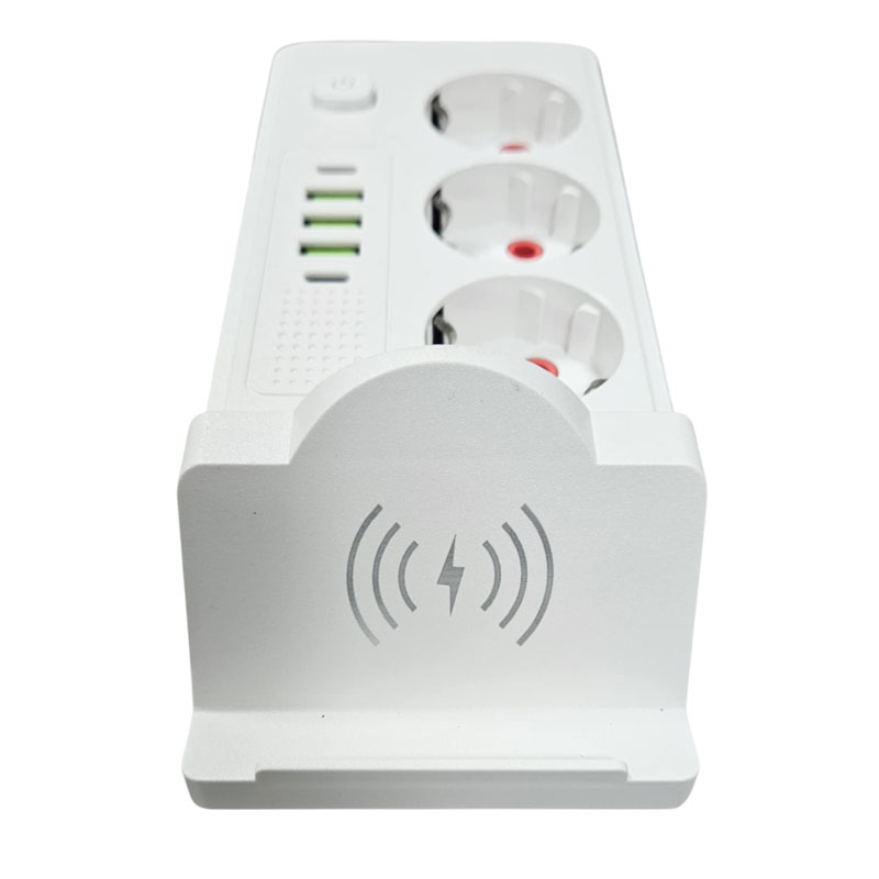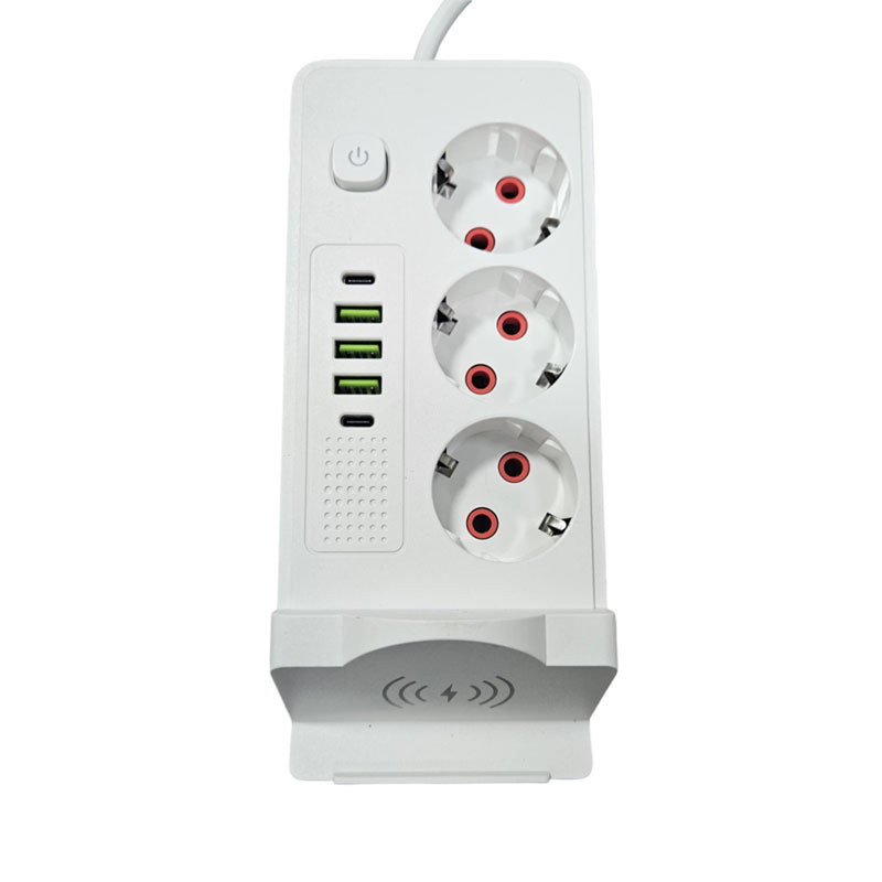 Πολύπριζο με 3 Θέσεις, 5 Θύρες USB και Ασύρματη Φόρτιση – Power Strip with 3 Outlets, 5 USB Ports and Wireless Charging