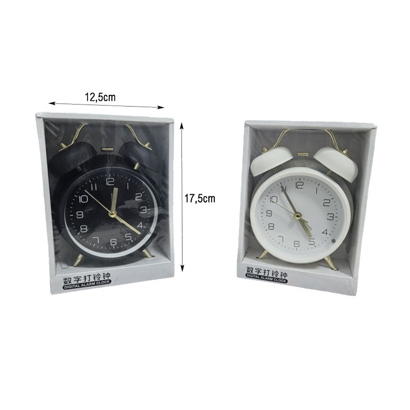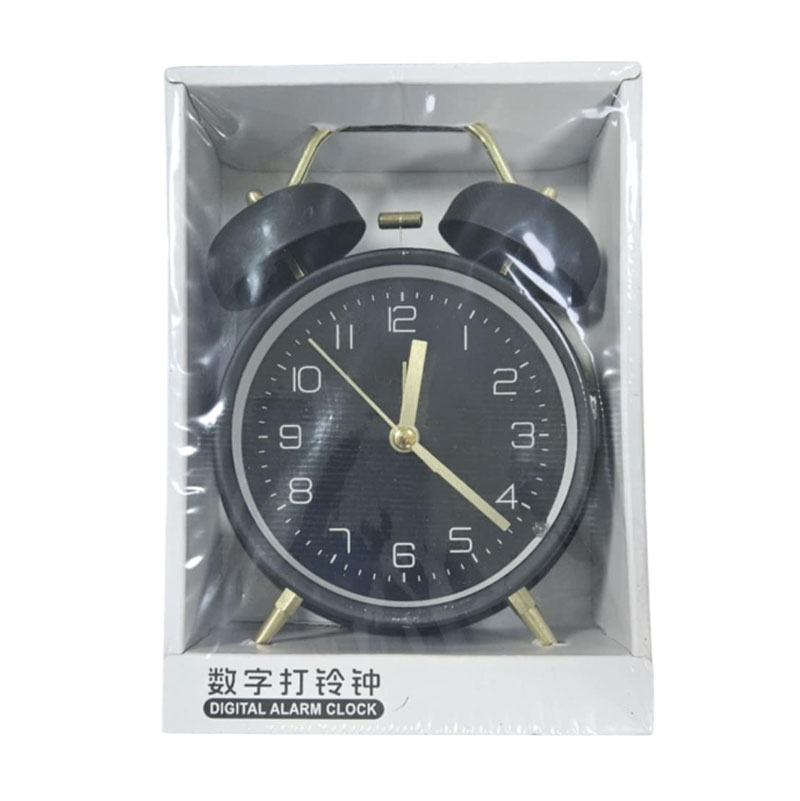 Κλασικό αναλογικό ξυπνητήρι με μεταλλικό σώμα και διπλό κουδούνι για δυνατό ξύπνημα. Διαθέτει ευδιάκριτους αριθμούς, κομψή σχεδίαση και λειτουργία αφύπνισης με μηχανικό ήχο. Είναι ιδανικό για το κομοδίνο ή το γραφείο και λειτουργεί με μπαταρία (δεν περιλαμβάνεται).