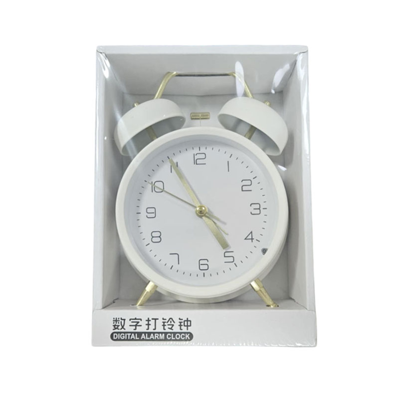 Κλασικό αναλογικό ξυπνητήρι με μεταλλικό σώμα και διπλό κουδούνι για δυνατό ξύπνημα. Διαθέτει ευδιάκριτους αριθμούς, κομψή σχεδίαση και λειτουργία αφύπνισης με μηχανικό ήχο. Είναι ιδανικό για το κομοδίνο ή το γραφείο και λειτουργεί με μπαταρία (δεν περιλαμβάνεται).
