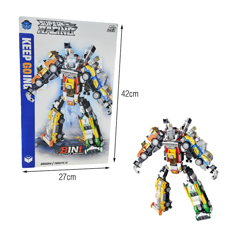 Σετ κατασκευής ρομπότ με εντυπωσιακό σχεδιασμό και δυνατότητα μεταμόρφωσης 8 σε 1, ιδανικό για δημιουργικό παιχνίδι και ανάπτυξη φαντασίας. Αποτελείται από πολλά κομμάτια που συναρμολογούνται εύκολα, επιτρέποντας διαφορετικούς συνδυασμούς και μορφές κατασκευής.