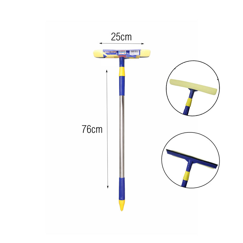 Πρακτική σκούπα καθαρισμού τζαμιών, ιδανική για παράθυρα, βιτρίνες, καθρέφτες, ντουζιέρες και άλλες λείες επιφάνειες. Διαθέτει διπλή επιφάνεια με σφουγγάρι για αποτελεσματικό καθαρισμό και λάστιχο για άψογο στέγνωμα χωρίς σημάδια.