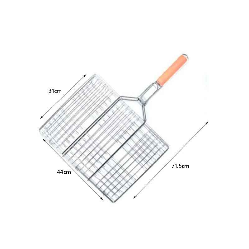 Σχάρα Ψησίματος ιδανική για μπάρμπεκιου, με ανθεκτική μεταλλική κατασκευή και ξύλινη λαβή για ασφαλή και άνετη χρήση.