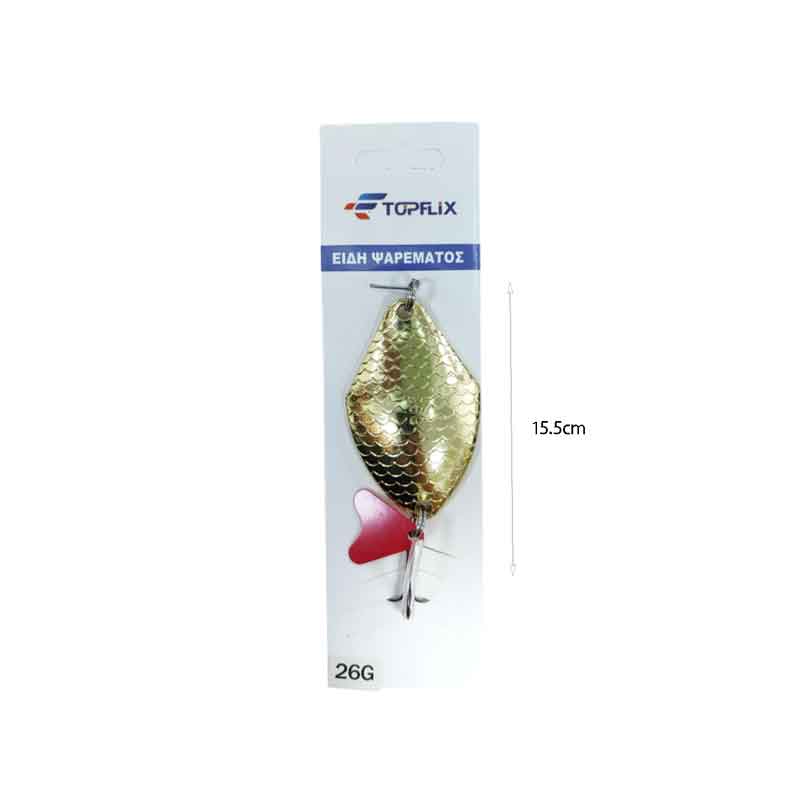 Αποδοτικό τεχνητό δόλωμα κουταλάκι (spoon lure) από την TOPFLIX, ιδανικό για θαλάσσιο και γλυκό νερό. Ο σχεδιασμός του προσελκύει τα ψάρια με έντονη κίνηση και αντανακλάσεις, ενώ το ζωηρό χρώμα ενισχύει την ορατότητα.