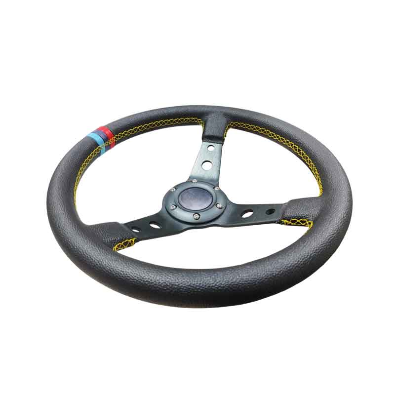 Ανανεώστε το στυλ και την αίσθηση οδήγησης του αυτοκινήτου σας με αυτό το racing τιμόνι διαμέτρου 35 cm. Διαθέτει μεταλλικό κέντρο, ανθεκτική επένδυση με αντιολισθητική υφή και εντυπωσιακές ραφές σε κίτρινο χρώμα που προσφέρουν επιπλέον σπορ χαρακτήρα. Η λεπτομέρεια με τις τριχρωμίες στην κορυφή χαρίζει μοναδικό design και αίσθηση motorsport.