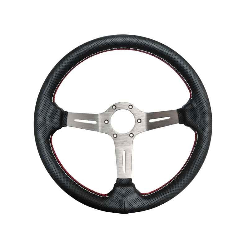 Αναβαθμίστε την εμφάνιση και τον έλεγχο του οχήματός σας με αυτό το racing τιμόνι διαμέτρου 35 cm. Κατασκευασμένο από ανθεκτικό μέταλλο και επένδυση υψηλής ποιότητας με αντιολισθητική υφή, προσφέρει σταθερό κράτημα και άνεση στην οδήγηση. Ο σπορ σχεδιασμός του με κόκκινες λεπτομέρειες προσθέτει στυλ και αίσθηση ταχύτητας.