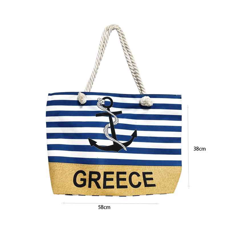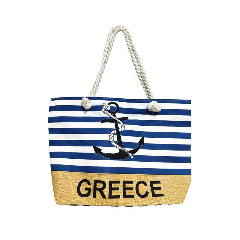 Τσάντα Θαλάσσης Greece με Ρίγες και Άγκυρα Ναυτικό Σχέδιο – Greece Beach Bag with Stripes and Anchor Nautical Design