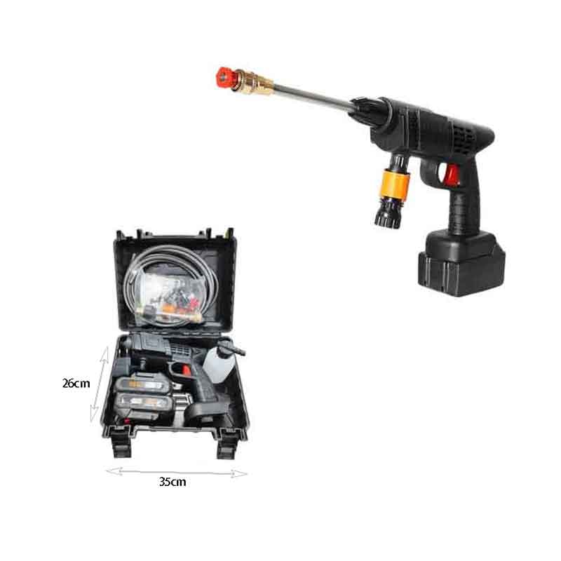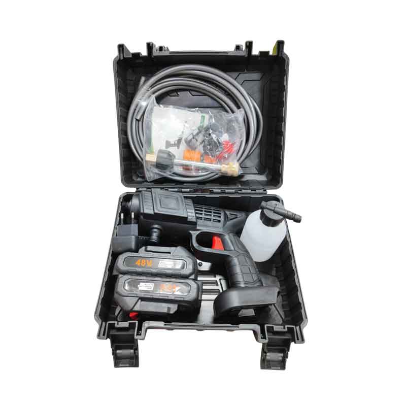 Πλήρες σετ φορητού πλυστικού υψηλής πίεσης 48V, ιδανικό για πλύσιμο αυτοκινήτου, μηχανής, ποδηλάτου, μπαλκονιού ή εργαλείων. Λειτουργεί με μπαταρία λιθίου για πλήρη φορητότητα και ευκολία στη χρήση χωρίς καλώδια. Παρέχεται σε πρακτική βαλίτσα μεταφοράς με όλα τα απαραίτητα εξαρτήματα.