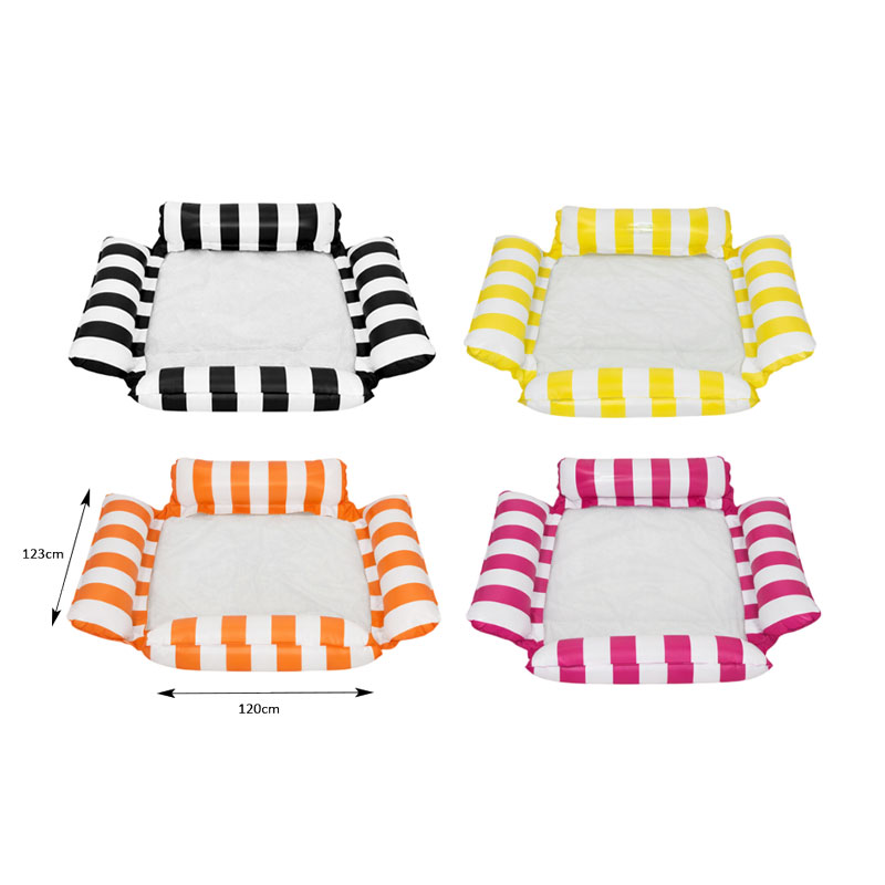 Απολαύστε στιγμές χαλάρωσης στη θάλασσα ή την πισίνα με αυτή τη φουσκωτή πολυθρόνα θαλάσσης με ενσωματωμένο δίχτυ καθίσματος. Διαθέτει άνετη πλάτη και μπράτσα για μεγαλύτερη στήριξη, ενώ το διχτυωτό κέντρο επιτρέπει στο νερό να σας δροσίζει, προσφέροντας ευχάριστη και ξεκούραστη εμπειρία τις ζεστές καλοκαιρινές ημέρες. Οι διαστάσεις της είναι περίπου 120x123cm, προσφέροντας επαρκή χώρο για άνετη χρήση.