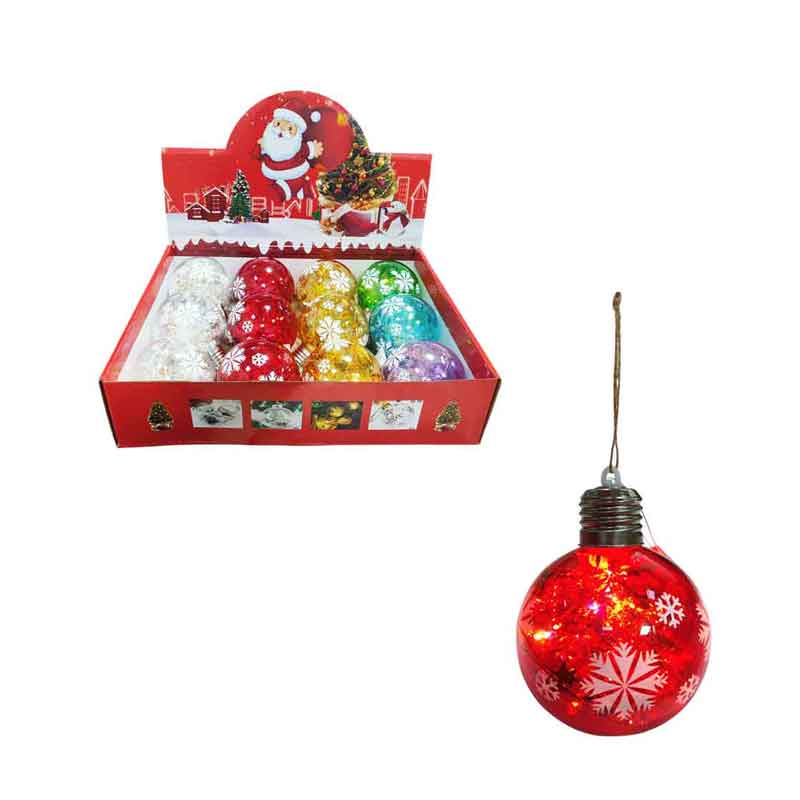 Χριστουγεννιάτικες φωτιζόμενες μπάλες με σχέδιο νιφάδες χιονιού, ιδανικές για να στολίσουν το δέντρο ή οποιονδήποτε εσωτερικό χώρο. Διατίθενται σε διάφορα χρώματα και εκπέμπουν ζεστό φως, δημιουργώντας μαγική γιορτινή ατμόσφαιρα. Ύψος μπάλας 10cm.