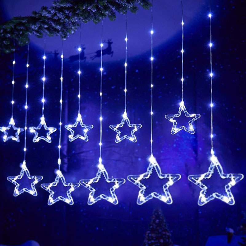 Χριστουγεννιάτικα Φωτάκια Κουρτίνα Αστεράκια Ψυχρό Χρώμα 10L 3M – Christmas decoration lights Cold light