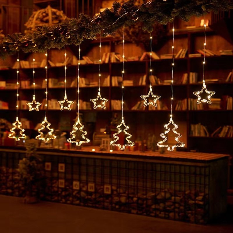 Χριστουγεννιάτικα Φωτάκια Κουρτίνα Δεντράκια & Αστεράκια Θερμό Χρώμα 10L 3M – Christmas decoration lights warm light