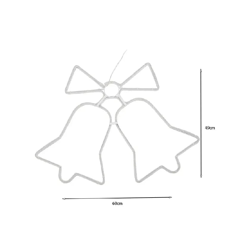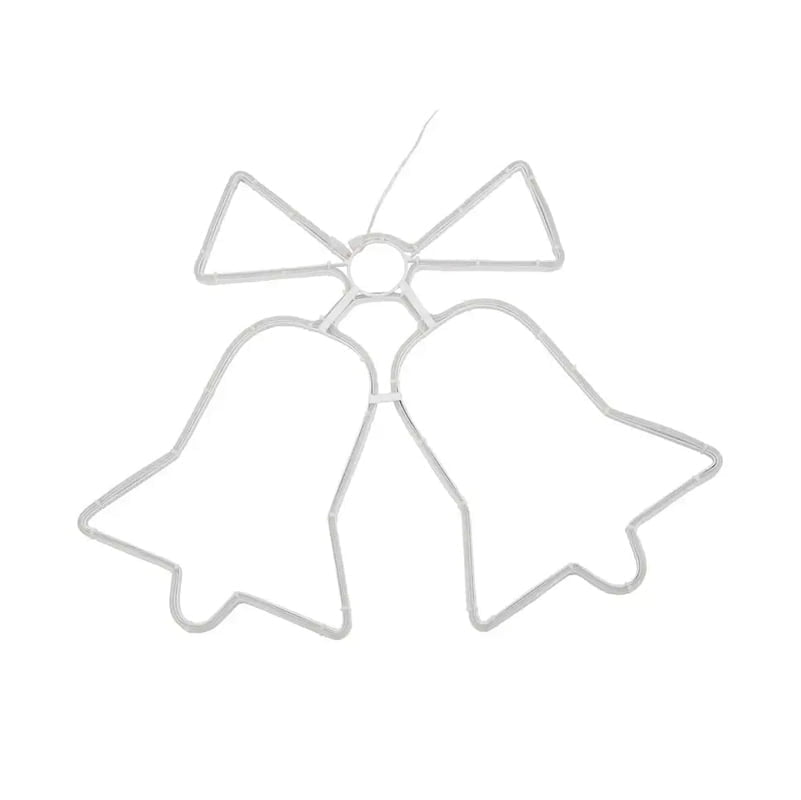 Διακοσμήστε τον χώρο σας με αυτό το εντυπωσιακό φωτεινό διακοσμητικό σε σχήμα διπλές καμπάνες με φιόγκο, που φωτίζει με καθαρό, ψυχρό φως LED.