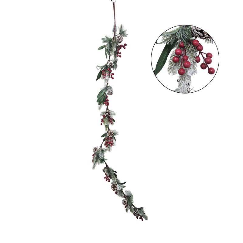 Εντυπωσιακή χριστουγεννιάτικη γιρλάντα με κουκουνάρια, κόκκινες μπάλες και πράσινα φύλλα, ιδανική για να στολίσει το τζάκι, τα κάγκελα ή το τραπέζι σας. Ο φυσικός της σχεδιασμός με λεπτομέρειες από “παγωμένα” κλαδιά προσθέτει χειμωνιάτικη ατμόσφαιρα και κομψότητα σε κάθε χώρο.