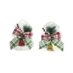 Χριστουγεννιάτικη διακοσμητική κορδέλα με κουδούνι, κουκουνάρι, κλαδάκι και μούρα, ιδανική για στολισμό πόρτας, δέντρου ή γιορτινής σύνθεσης. Κατασκευασμένη με προσοχή στη λεπτομέρεια, συνδυάζει υφασμάτινη κορδέλα σε παραδοσιακά χρώματα με κουδούνι για ζεστή και εορταστική ατμόσφαιρα.